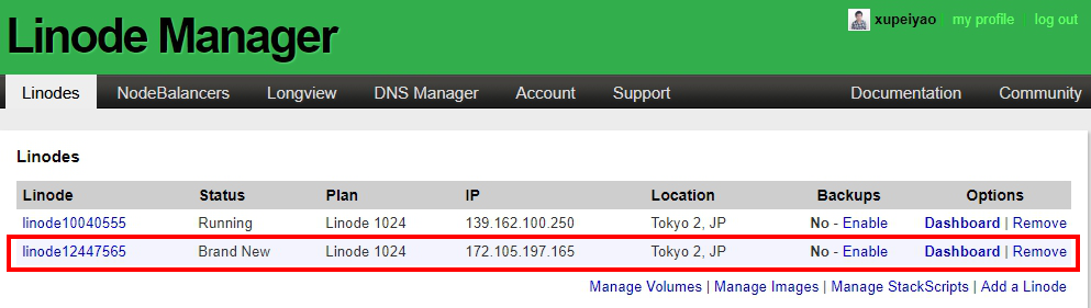 在Linode架設站台與安裝docker環境與簡單的網頁控制介面(2019/1/19) 一、前往 Linode 官網,點選右上方的Log in 二、輸入帳號密碼 三、登入後進入控制面板點選右下方Add a Linode建立新的 VM 四、虛擬基方案選擇Nanode 五、選擇主機地區為JP 六、建立後將會在控制面板看到一個狀態為Brand New的 VM,進入Dashboard 七、選擇部屬映像檔選項 八、選擇 Ubuntu 並設定 root 帳號密碼,點選Deploy部屬 九、等候 VM 狀態為 Runing 後進入 Dashboard 選擇 RemoteAccess 標籤 十、使用 SSH 工具或使用網頁版的 SSH 工具連入主機 十一、更新 apt-get install upgrade 十二、安裝 docker apt-get install docker.io 十三、檢查 docker 服務狀態為 active service docker status 十四、下載 portainer 映像 docker pull portainer/portainer 十五、建立 docker volume 用以儲存 portainer 設定 docker volume create portainer_data 十六、建立 docker container docker run -d -p 9000:9000 --name portainer --restart always -v /var/run/docker.sock:/var/run/docker.sock -v portainer_data:/data portainer/portainer 十七、使用VM公用IP連接VM Port 9000進入網頁版控制介面