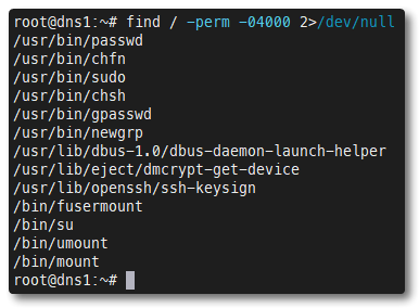 pkill -9 -u <user>Files with setuid allow any user to execute that file as root. While this is neccesary for some files, with others it can be extremely dangerous. It's worth checking ones that look suspicious before continuing.