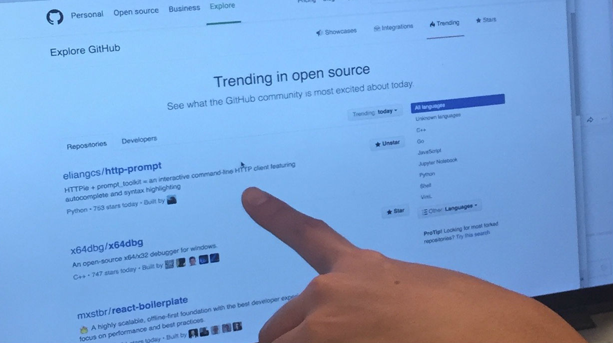 Reddit was really effective. Most of the traffic of HTTP Prompt came from Reddit. The stars were increasing almost by the speed of one star per minute, which eventually made it climb to the top 1 on GitHub Trending. My wife took a photo for me as a memento: