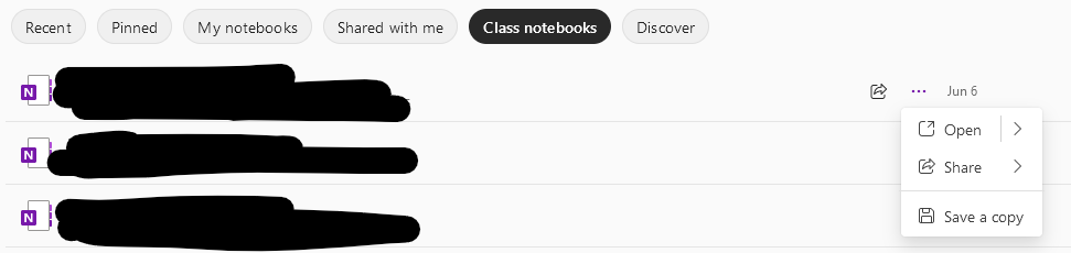 Class Notebookstab. - Click on the three dots that appear when hovering over a notebook and press