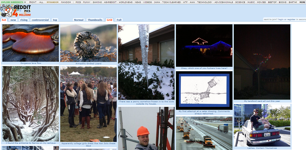 Unique Views: View an entire subreddit in a new way. View thumbnails only, full images, and large grid mode. (more to come)