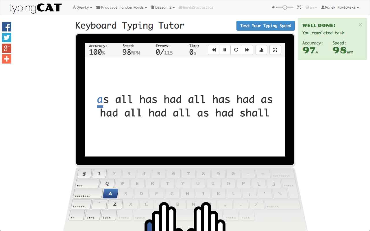 - Description: The Typing Cat is free online keyboard typing tutor designed for both beginers and advanced typists.