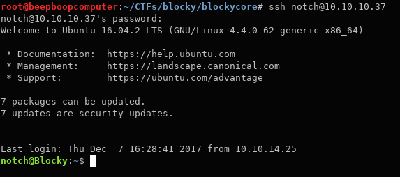 ssh notch@10.10.10.37