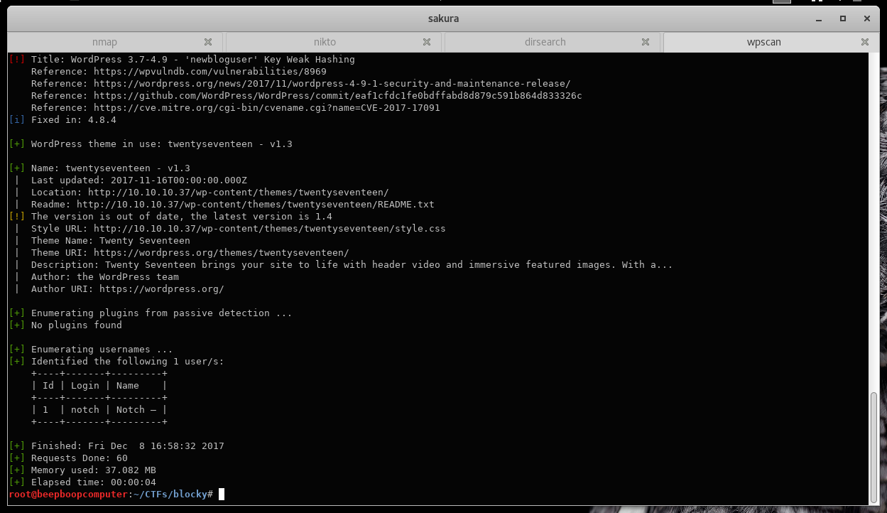 (Today, I would append | tee wpscan_blocky.txt to save the output.)