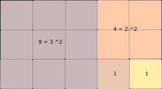 The drawing below gives an idea of how to cut a given "true" rectangle into squares ("true" rectangle meaning that the two dimensions are different).