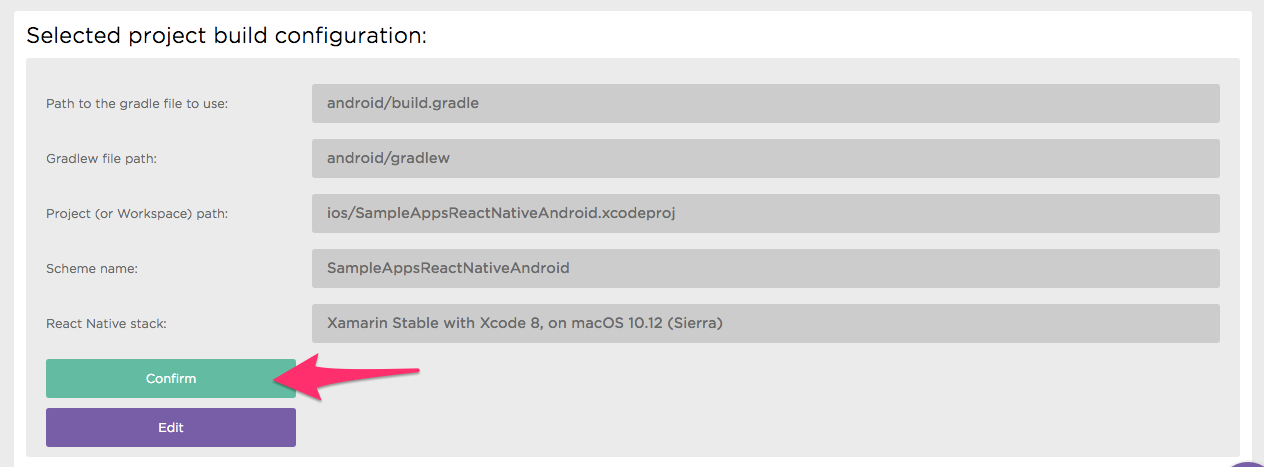 - Project build configuration: our scanner will most likely have chosen React Native for your app. Yay! :) Select Scheme name!