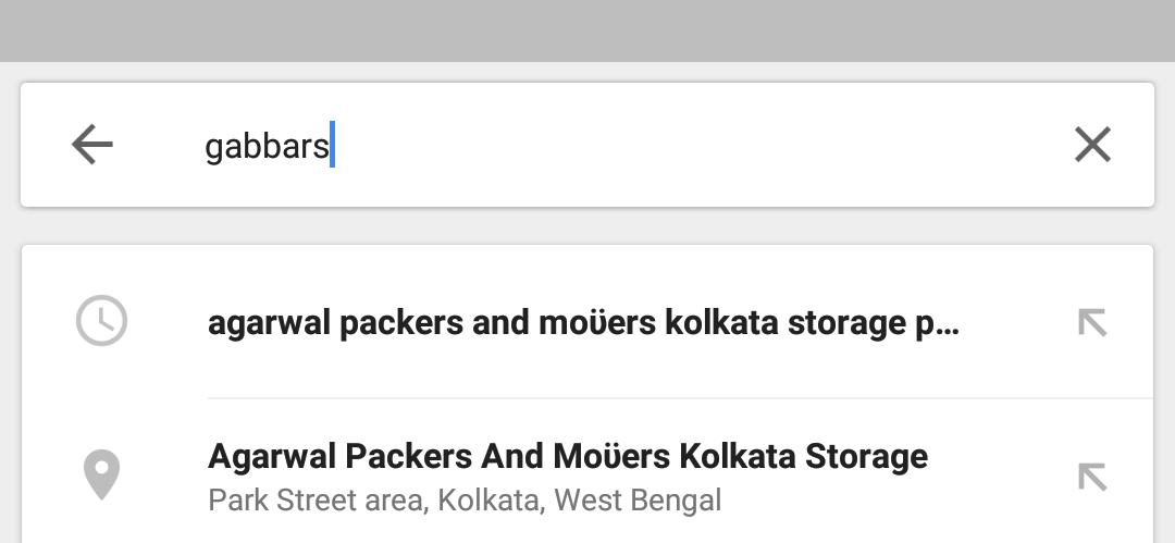 About a year back there was this widespread spamming attempt in Bangalore where there was non-existent places popping up everywhere with the name of "Agarwal Pakcers and Movers". All of these places looked like this -