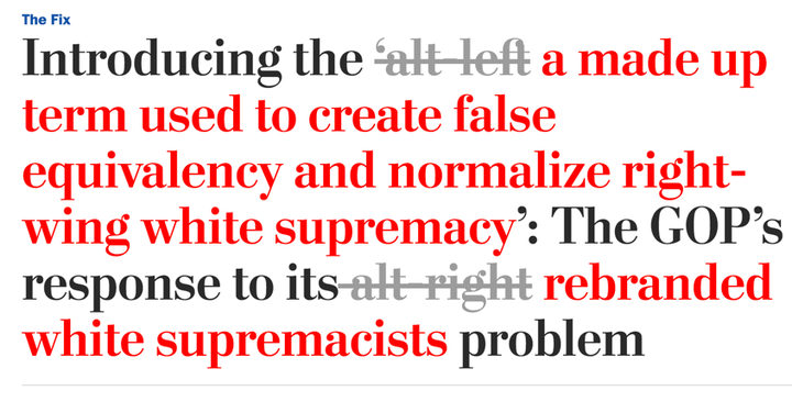 | "alt-left": "made up term used to create false equivalency and normalize right-wing white supremacy", | |