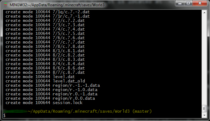 savesdirectorycd /c/Users/YOURNAME/AppData/Roaming/.minecraft/saves/World1for World 1.