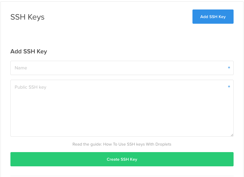 Then, back on Digital Ocean, give the key a name and paste it into the space as shown below: