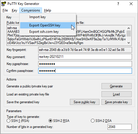 "c:\Program Files (x86)\PuTTY\puttygen.exe"The server hosting the KVM machines is hostA below.