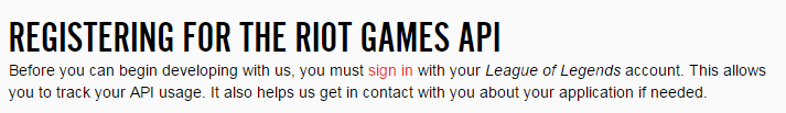 When I started my project, I thought it would have been a simple "create and run" application with no need for anything special besides a few imported APIs. Man was I wrong. My application as a whole was a walking danger to Riot Games and in order to do something I would have to give up my personal account in return for a "Developer's Key."