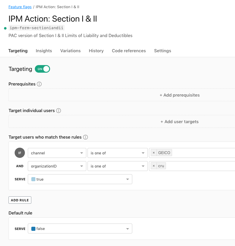 }In Launch Darkly, we will setup rules on a user-by-user basis for each post bind policy action flag in each application.