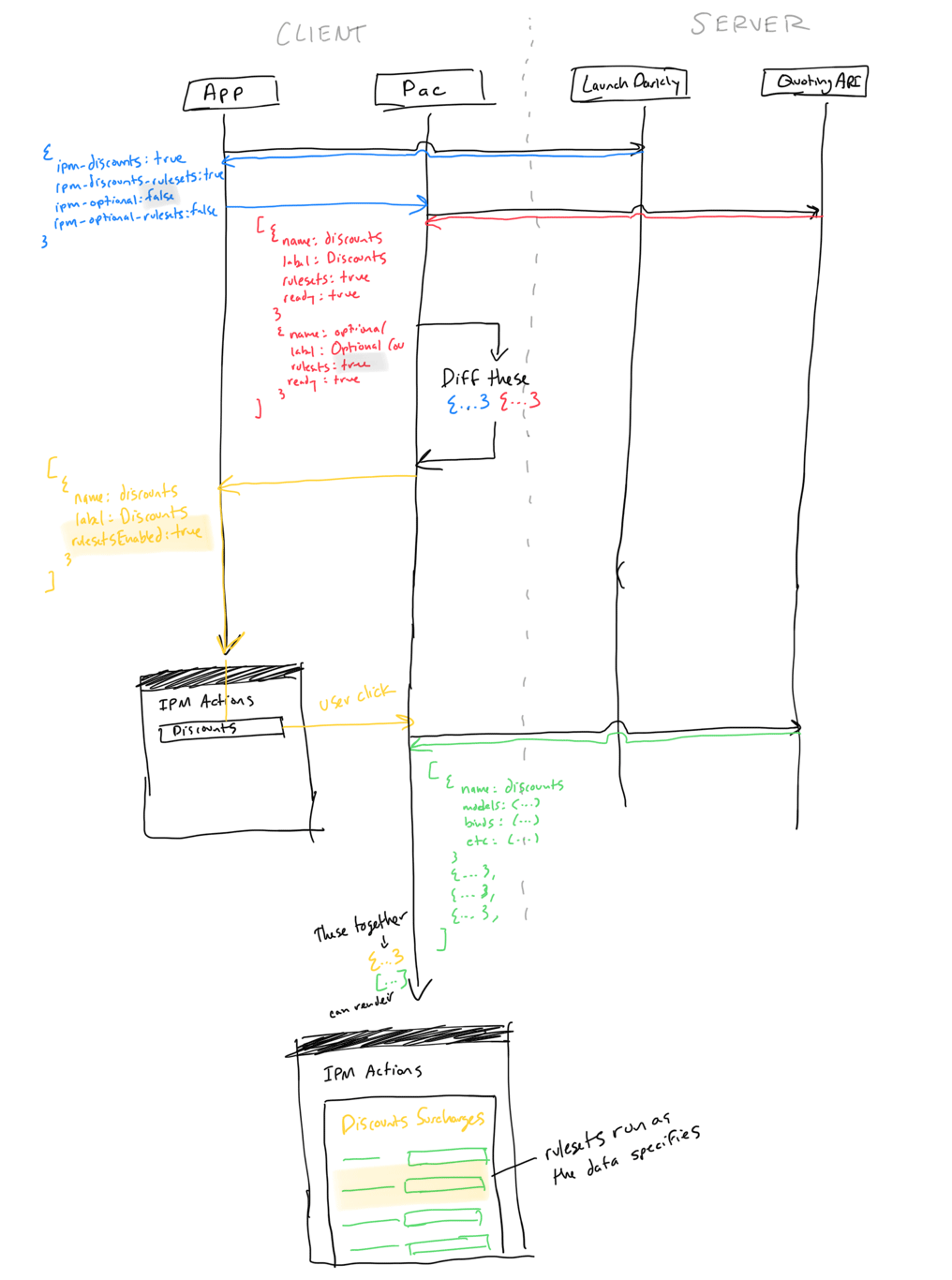 };Through this promise Pac makes available, the client implementing Pac will have be able to get the info it needs to render a list of IPM actions available to the current user in the current application based on the current product. When any of those buttons are clicked, <Pac /> would get called to render that form. Example implementation: