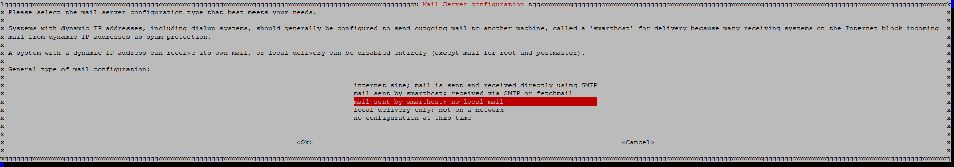 mail sent by smarthost; no local mail - Enter the hostname of the server. (Usually this should be done automatically)