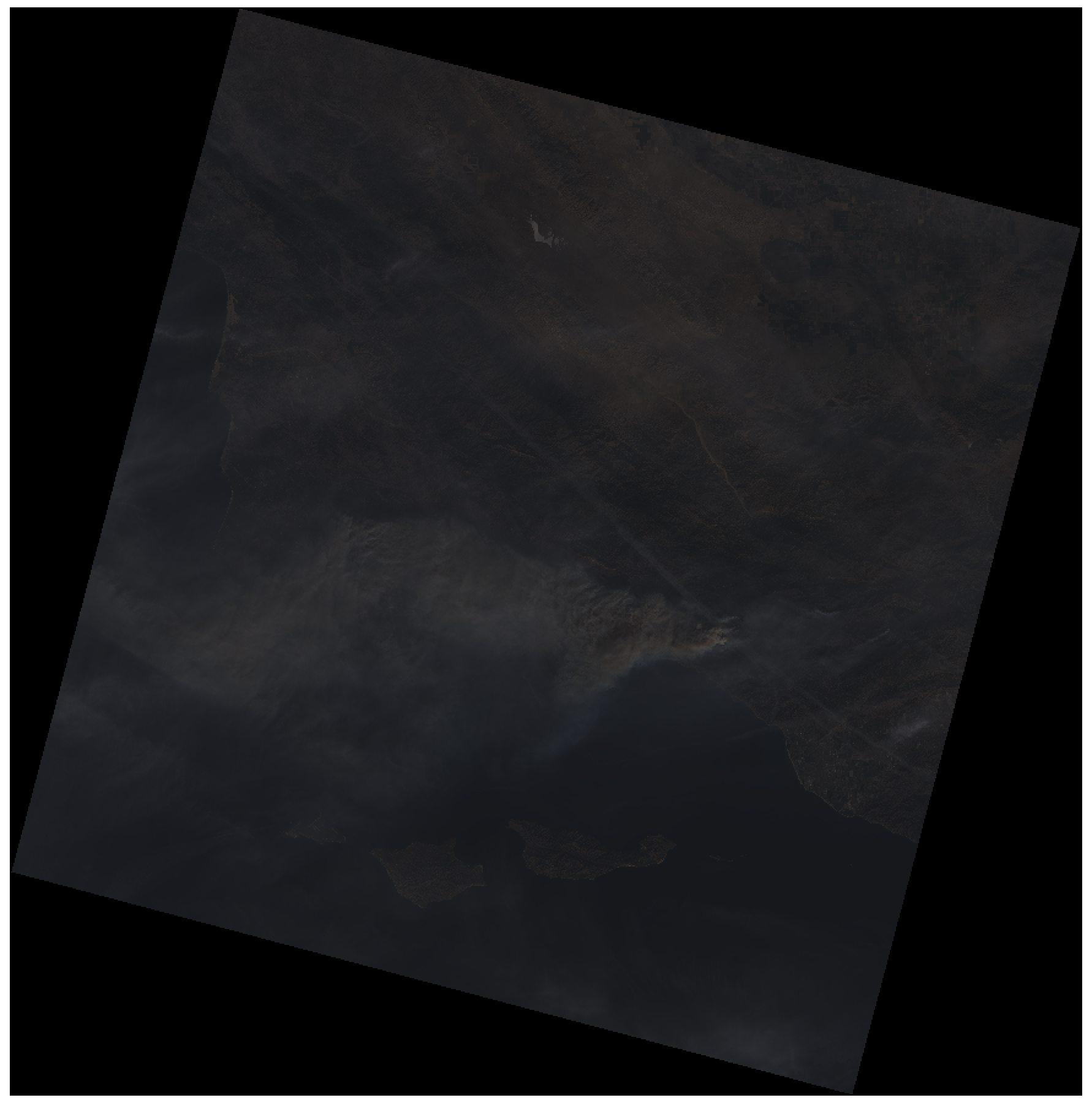 $ mapbox upload jacques.santa-barbara-432 432-dehazed.tifOur 432 composite shows the smoke well, but it's difficult to pinpoint the fire itself. Let's build a 752 composite, which should let us "see" it a bit more clearly.