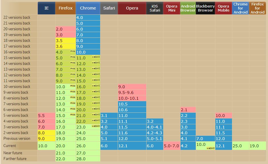 storageevent. - WebSQL. Dropped by the W3C but it's still very present in the wild, with notable platforms like iOS and PhoneGap.