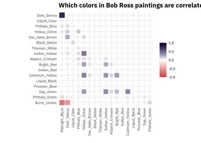 labs(title = "Which colors in Bob Ross paintings are correlated?")