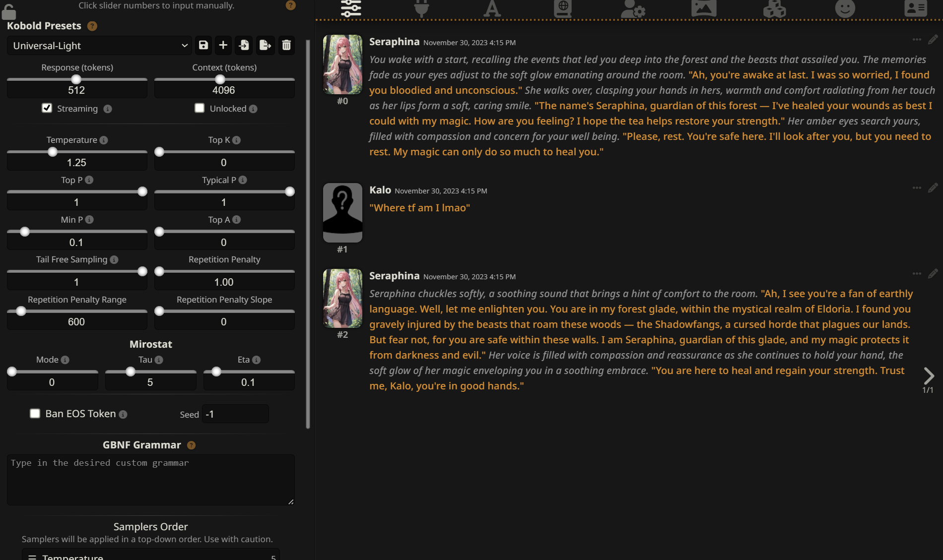 And that’s about it for basic use of Llama & SillyTavern for character chats!