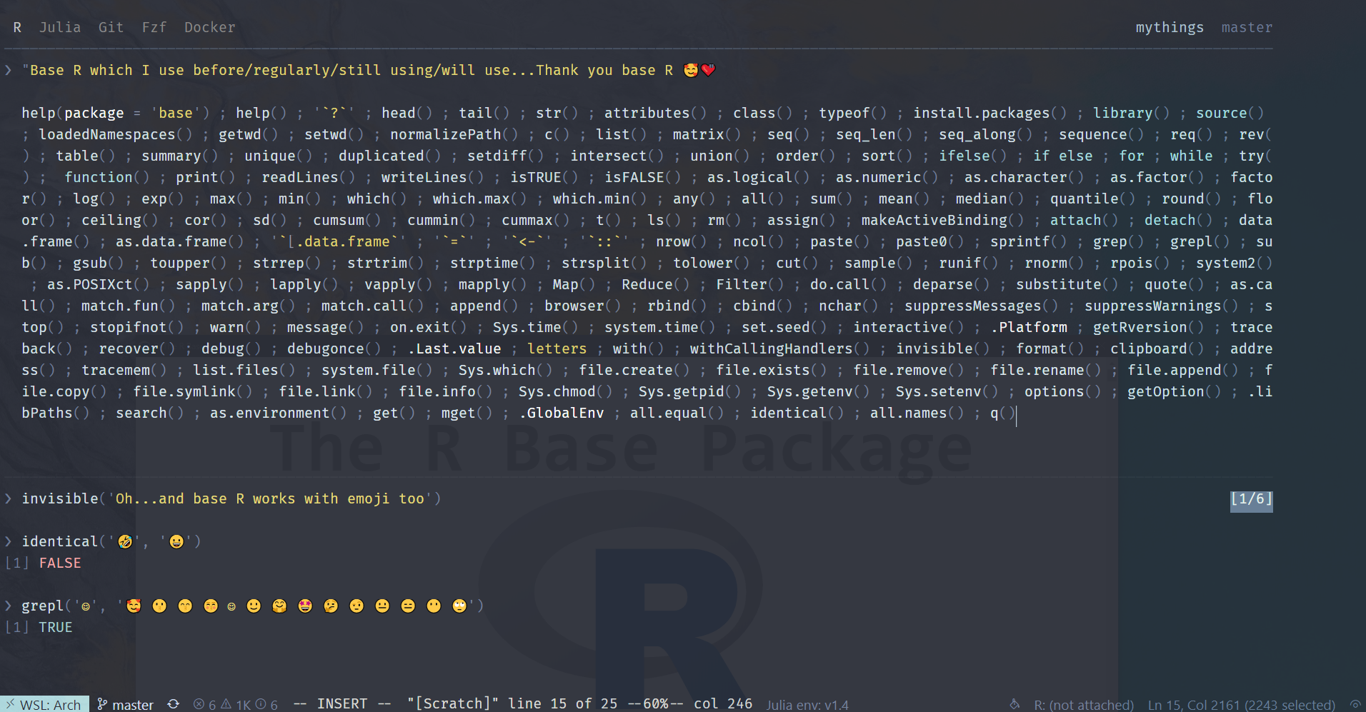 "I'm literally typing out the Base R which I use before/regularly/still using/will use...Thank you base R π₯°β€οΈ"