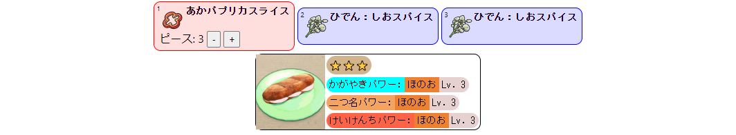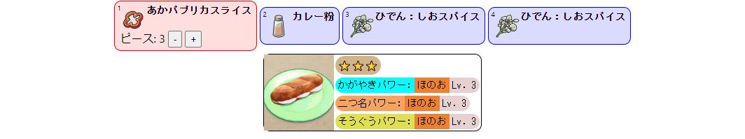 「あかパプリカ」と「しおスパイス」2つですが経験値パワーになっています。