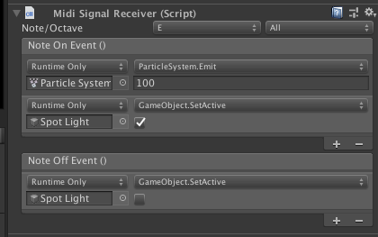 - Add the MIDI Signal Receiver component to a game object that receives MIDI signals.