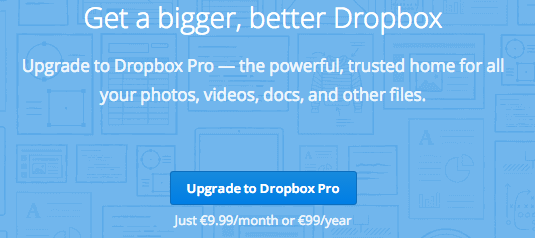 Last week Dropbox introduced Dropbox Pro with 1TB storage space (and some other cool features) for $99/year (or $9,99/month), which is a pretty good deal (Google Drive 1TB also costs $99,99/year). The problem: it's not $99/year, but $130/year (or $13/month) if you happen to live in Europe. Instead of converting prices from dollars to euros, they just changed $ to €.