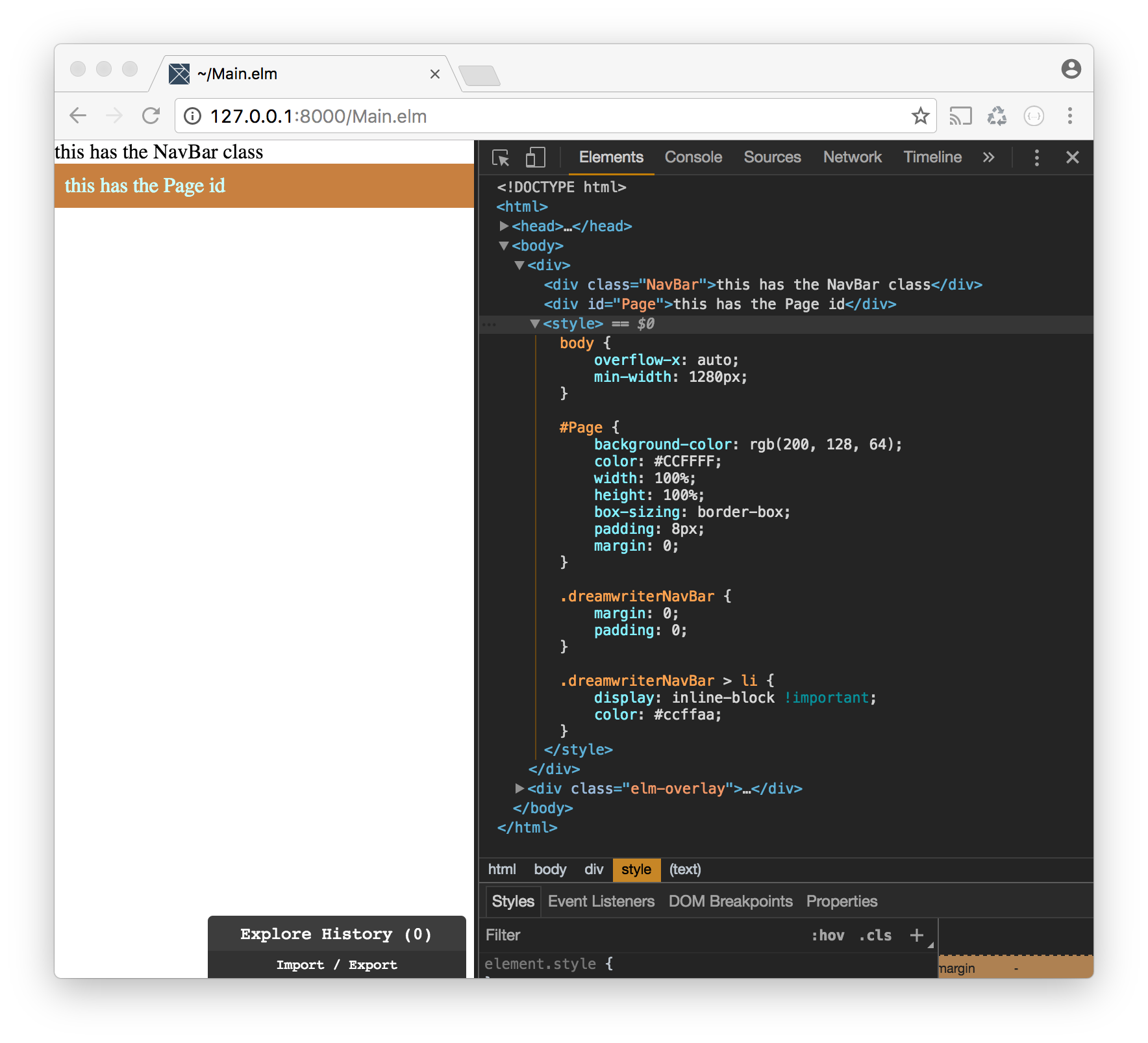 | , div [ id "Page" ] [ text "this has the Page id" ] | |