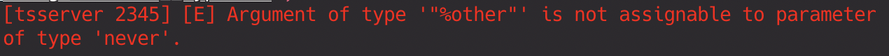}By structuring your switch statements with a never type default fallthrough, you get a better error explaining the problem.