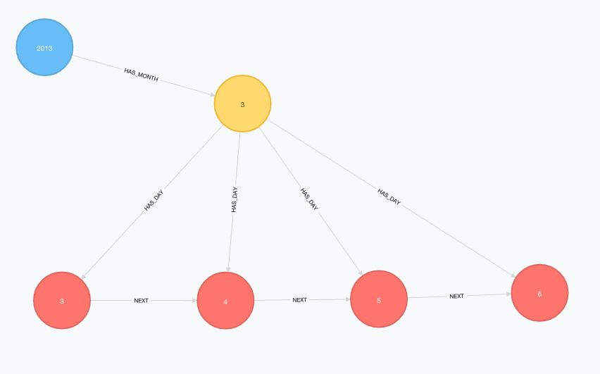 CREATE UNIQUE (day1)-[:NEXT]->(day2))));The result is something like this: