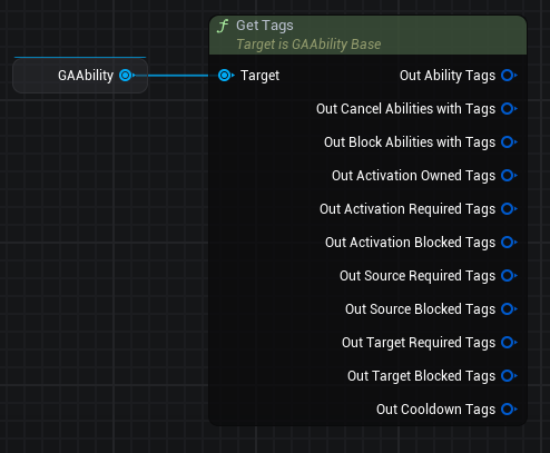 void GetTags(FGameplayTagContainer & OutAbilityTags, FGameplayTagContainer & OutCancelAbilitiesWithTags, FGameplayTagContainer & OutBlockAbilitiesWithTags, FGameplayTagContainer & OutActivationOwnedTags, FGameplayTagContainer & OutActivationRequiredTags, FGameplayTagContainer & OutActivationBlockedTags, FGameplayTagContainer & OutSourceRequiredTags, FGameplayTagContainer & OutSourceBlockedTags, FGameplayTagContainer & OutTargetRequiredTags, FGameplayTagContainer & OutTargetBlockedTags, FGameplayTagContainer & OutCooldownTags);