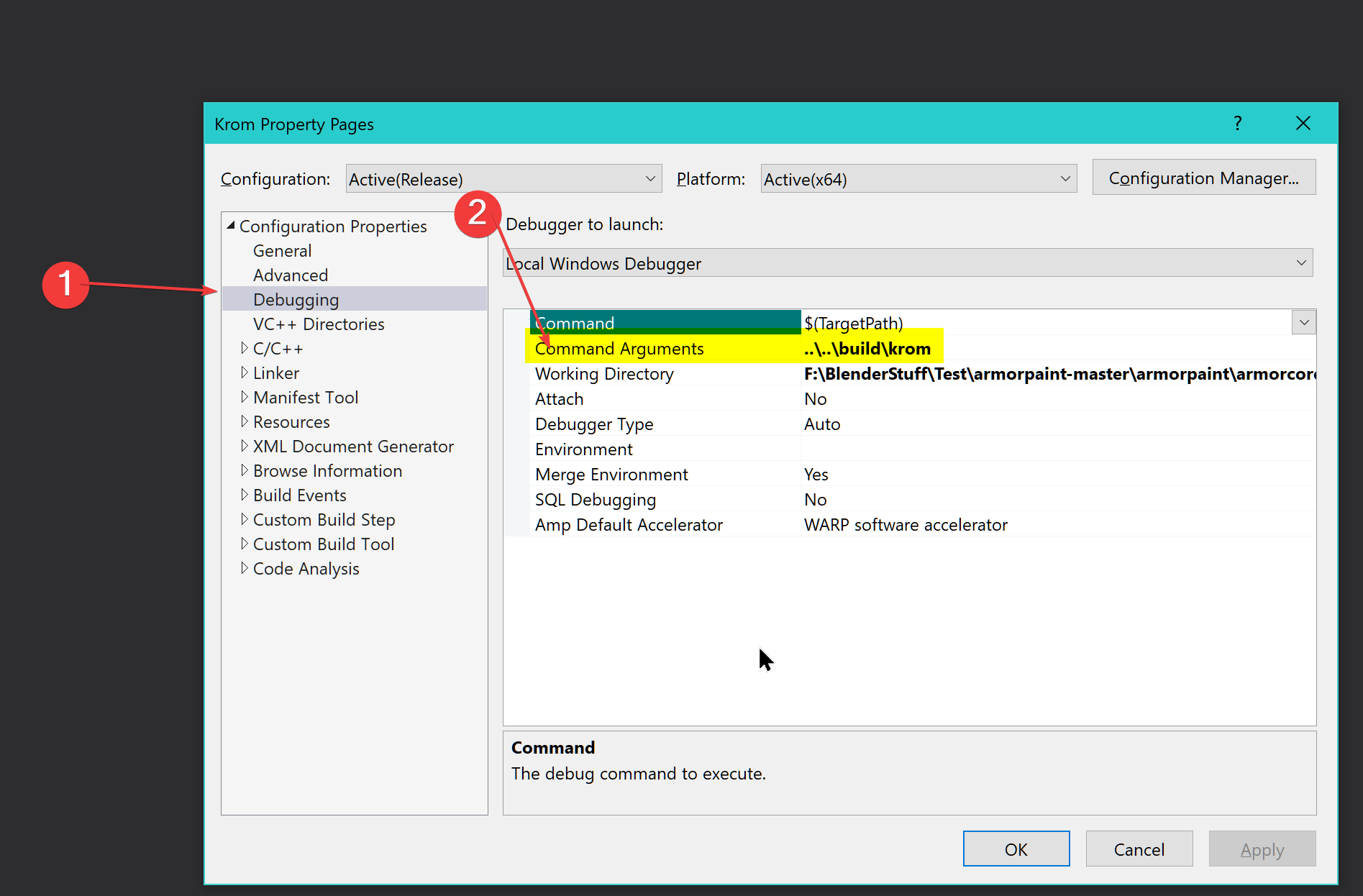 [The Folder you created]/armorpaint/armorcore/build/x64/ReleaseYou should now find an exe namedKrom.exe. Running the executable does nothing so keep following - Copy