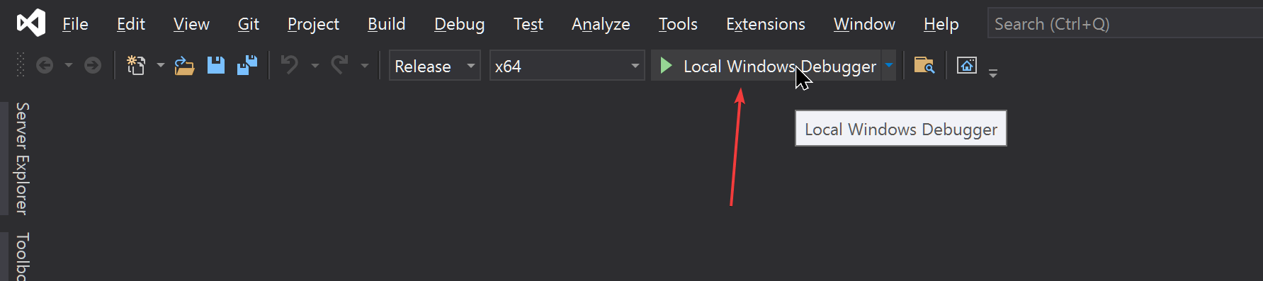 You can either choose to run the Local Window Debugger (NOT RECOMMONDED)
