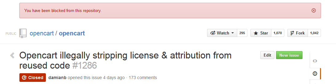 Everyone who posted in it has also been blocked from the OpenCart repo.