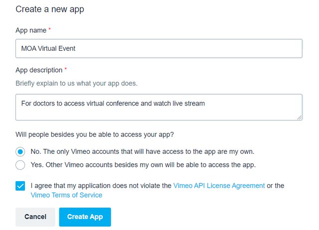 Vimeo also requires owner to specifically request for permission to do direct video upload, this request might take up to 5 days for approval, so please prepare it as early as possible.