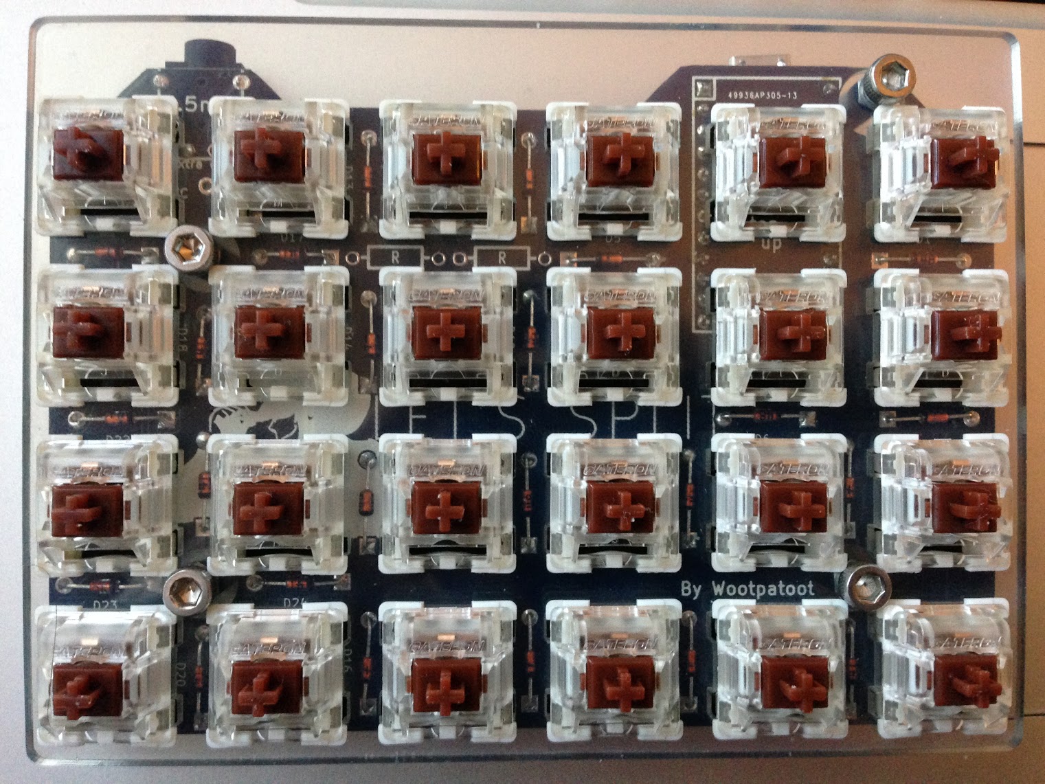 Home stretch. Gently snap in the rest of the switches and solder them.