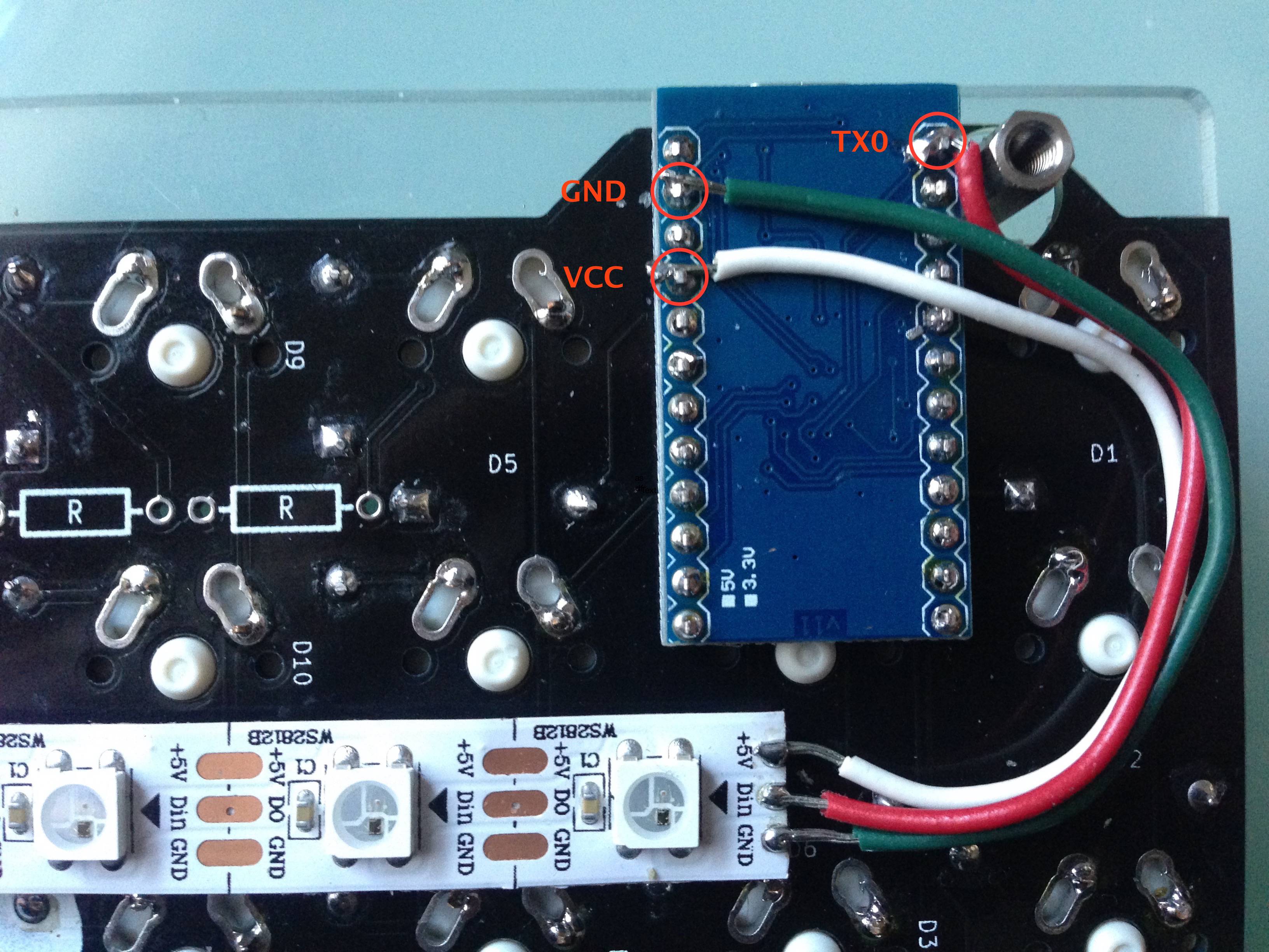 Tip: Flash your Pro Micro now before you mount it. You can test it by using a multimeter to measure the voltage between VCC and RAW. It should be around 5V. If it's bad it'll be a lot less headache than desoldering.