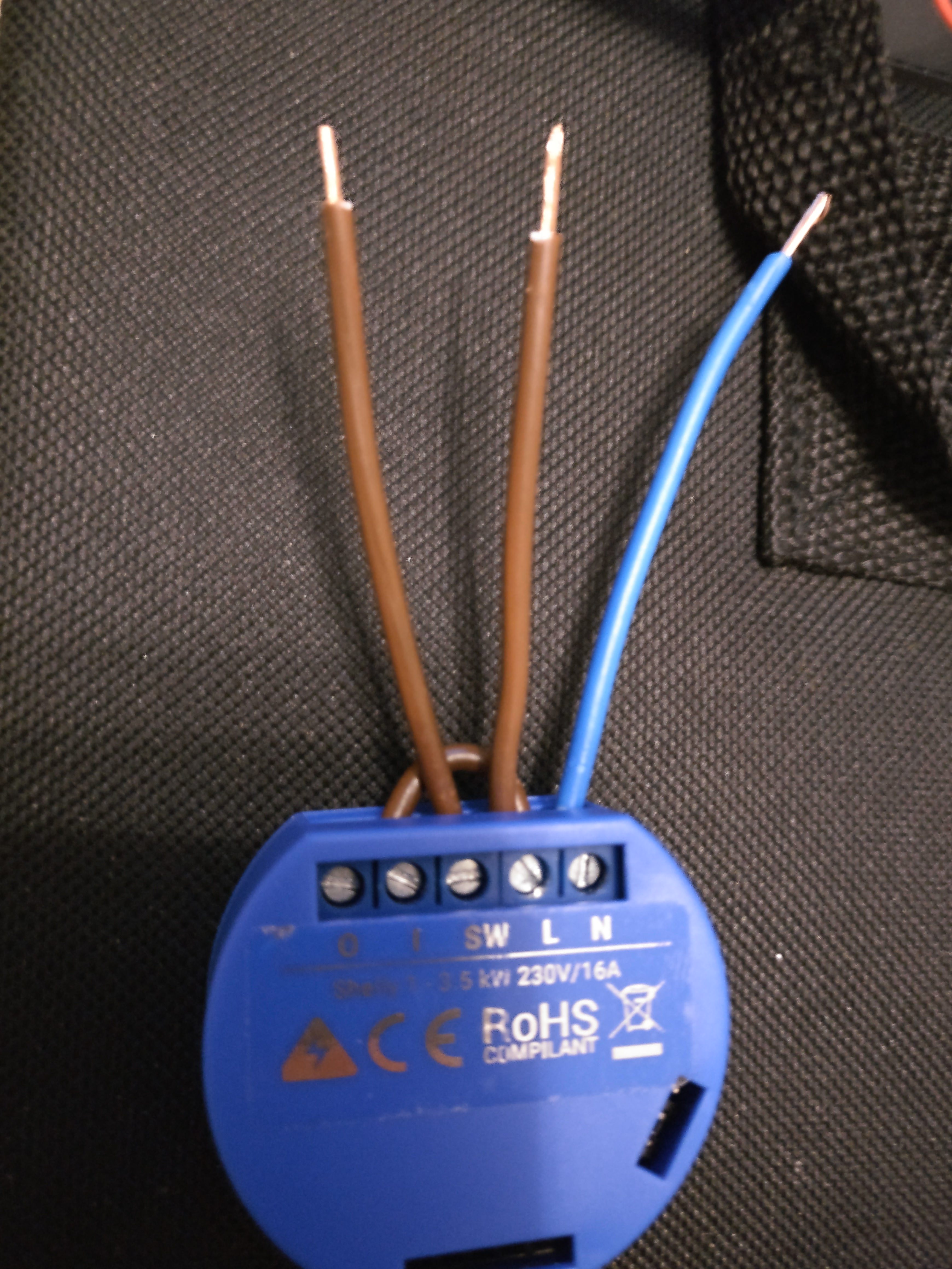 - Install the shelly into the base of the new lamp and connect up the lamp wires. 3. Rember to reduce the length of the lamp wire so the pendant is at the correct height. 4. The red/brown live of the lamp should connect to the O(utput) of the Shelly 1. The shelly will only supply power when you want the light on! 5. The neutral of the lamp can be fitted into the N terminal of the shelly if there is room, otherwise you can put it into the neutral connector block you will be installing.