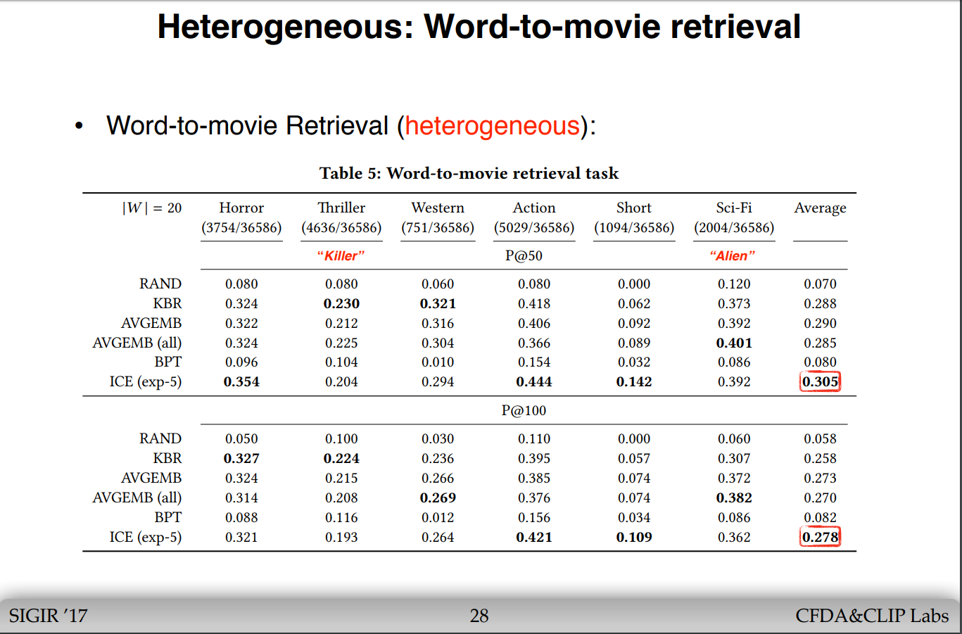 - BPT:他自己ICE方法的閹割版,沒有expanded relation,一個item用topk tf-idf單字去表示一個item這部份則跟ICE一樣。