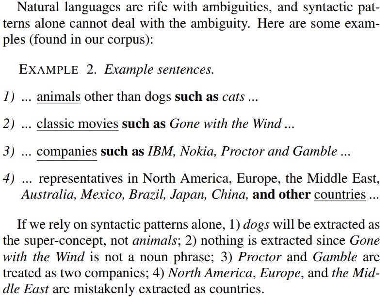 - coverage:使用bing的query log,使用者下的query裏面contains at least one concept or instance within the taxonomy 就算covered by a taxonomy,probase測出來有81%