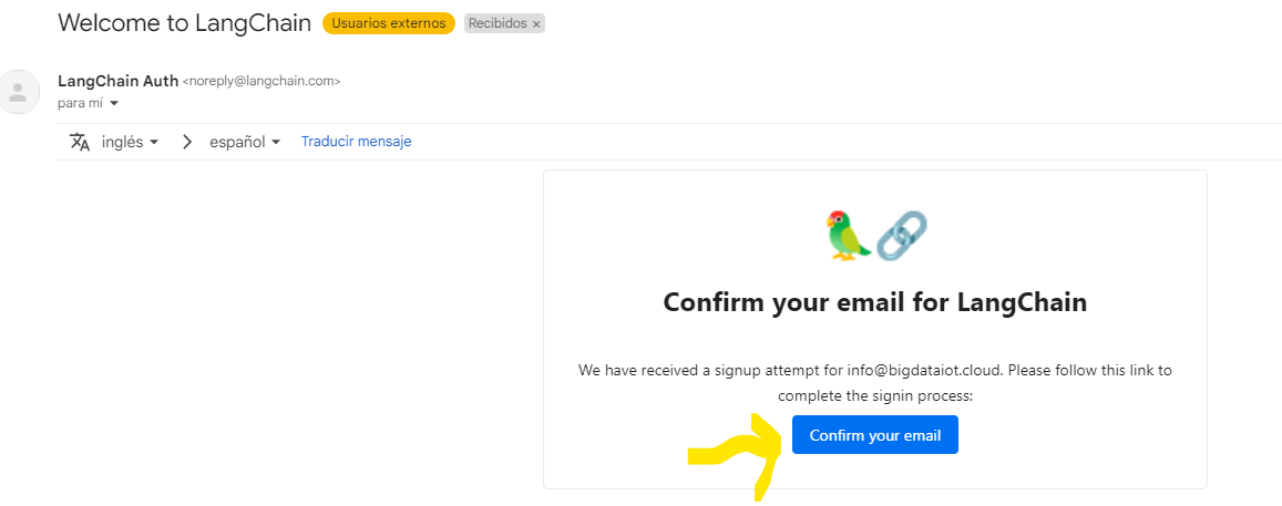 Nos llegará un mensaje a nuestro correo para validar la cuenta, clic en Confirm your email.