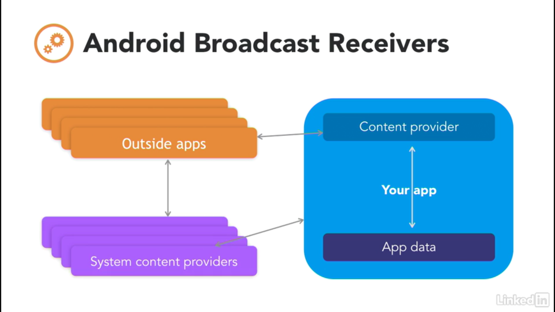 These receivers will be on listening mode and when they receive an appropriate broadcast, they will call the onReceive method to cause a change in the app that they are designated for.