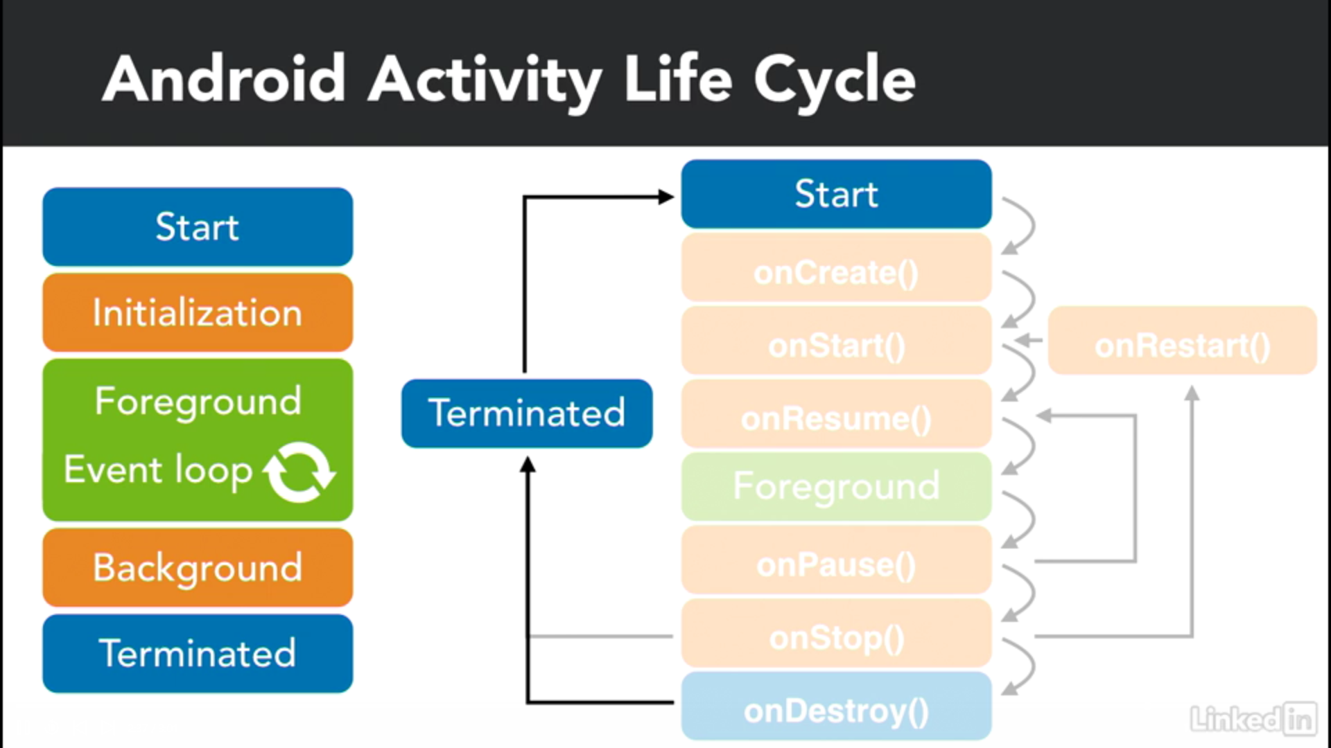 onCreate: initialize resources and create the UI.onPauseand/oronDestroy: save changes to data before your app moves from the foreground to the background or your app process is destroyed.