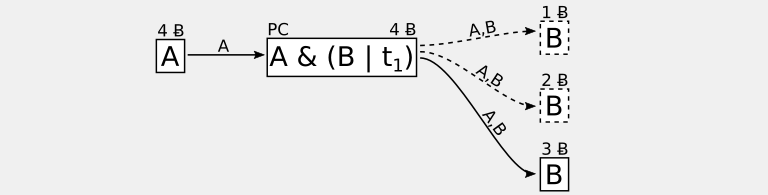 A: a valid signature from a key owned by Alice.B: a valid signature from a key owned by Bob.k,k1,k2, etc.: a correct unlock value (a preimage of given size that reproduces a given hash).t1: a fallback time t1 has expired. (this is used for guaranteed refunds)t2: a fallback time t2 has expired. In all the examples below, t1 < t2 is required for security reasons.