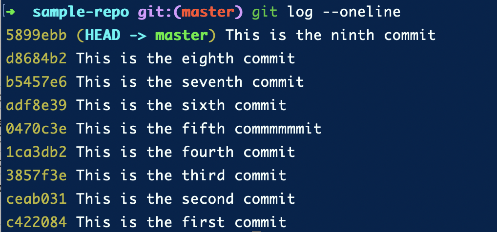 To warm-up, let’s try to use interactive rebase on our local sample repo. You can get the list of the commits by running