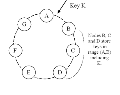 新しいノード(Xとする)がシステムに追加されたとき、リング上をランダムに選択するいくつかのトークンが割り当てられます。ノードXに割り当てられた全てのキー範囲について、(N以下の)いくつかのノードが現在そのトークンレンジ内に落ちたキーをハンドリングする責任があるかもしれません。Xのキー範囲割り当てのため、いくつかの既存のノードはもはやそのキーのいくつかをストアしなくてもよくなるので、これらのノードはXにそれらのキーを転送します。Figure 2にあるようにAとBの間にノードXが追加される独立した例を考えましょう。Xがシステムに追加されたとき、レンジ(F,G],(G,A], そして(A,X]をストアする責任があります。その結果として、ノードBとCとDはもはやその責任範囲のキーをストアする必要が無くなります。なので、ノードB,C,Dは適切なキーセットの転送をXに提案して承諾を得ます。ノードがシステムから除外されたときは、逆のプロセスでキーの再配置が発生します。