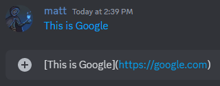 You can use masked links to make text a clickable or pressable hyperlink. To do so, you need to include the text you want displayed in brackets and then the URL in parentheses. For example: