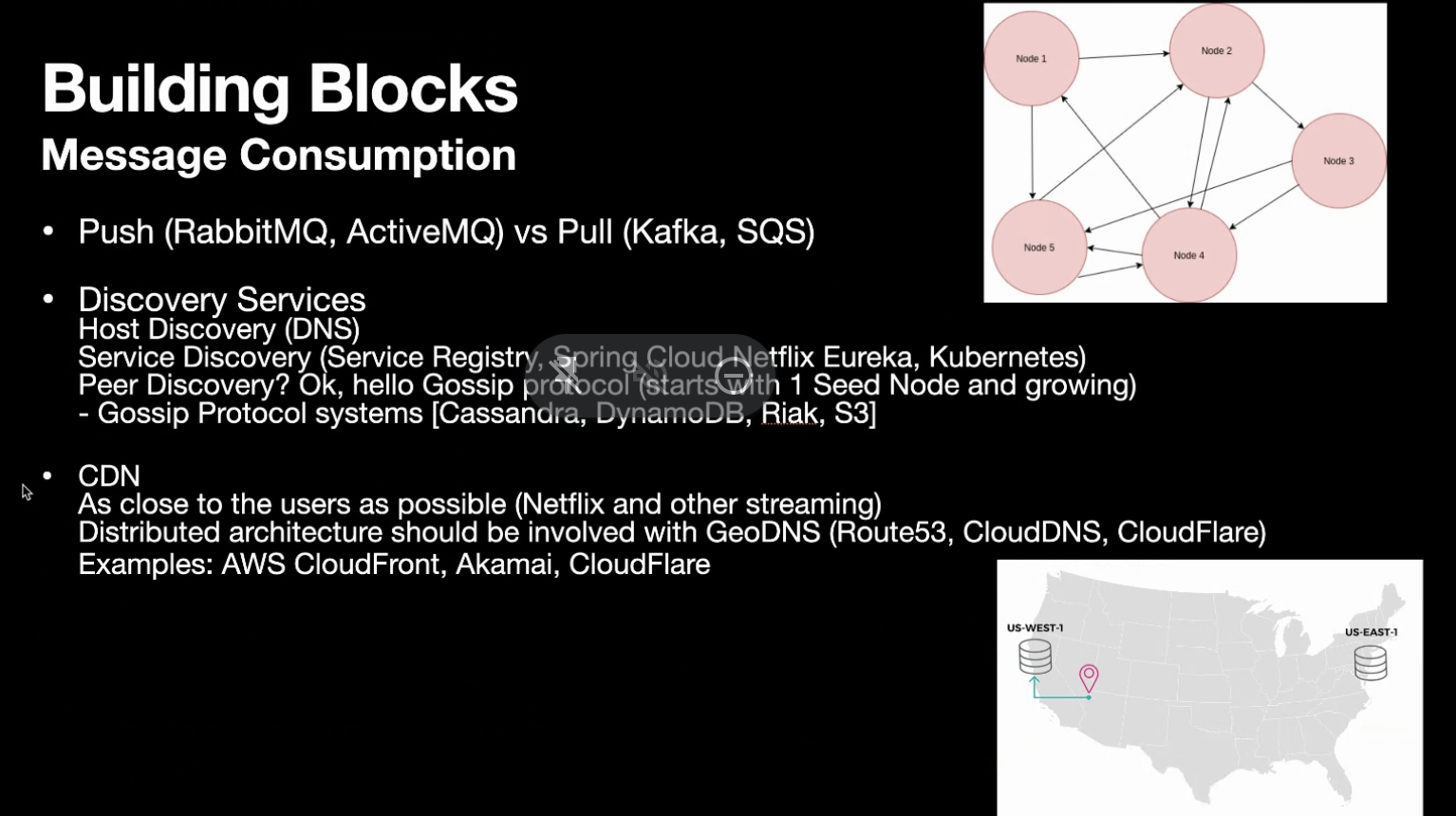 Host discovery - DNS Service Discovery - (Service Registry, Spring Cloud Eureka, Kubernetes) Peer Discovery: - Gossip protocol (example: Cassandra, DynamoDB, Riak, S3) - ZooKeeper