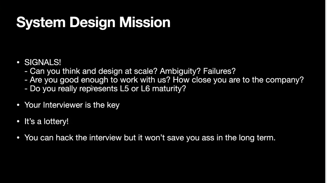 L5-L6 отличаются интервью: На Л6 уровне нужно добавлять знания и показывать ваш личный экспирианс Систем дизайн это про общение с интервьюером
