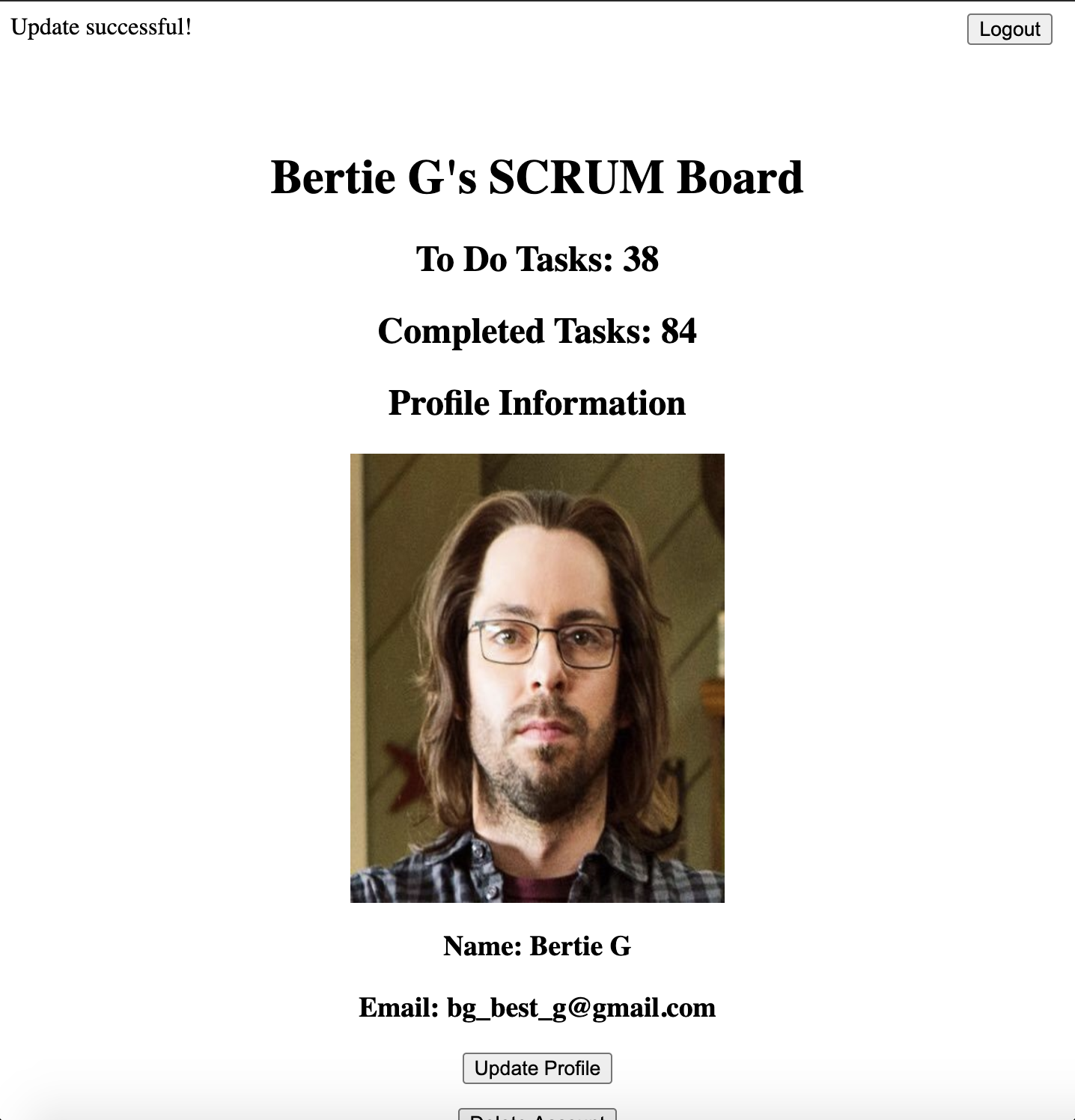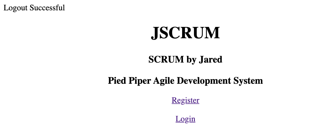 Simply clicking the logout button logs the user out and returns them to the welcome page with a success message letting the user know they were logged out.